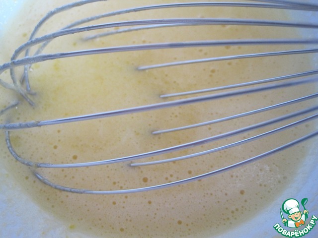 Желтки растираем с сахаром и двумя столовыми ложками горячей воды.