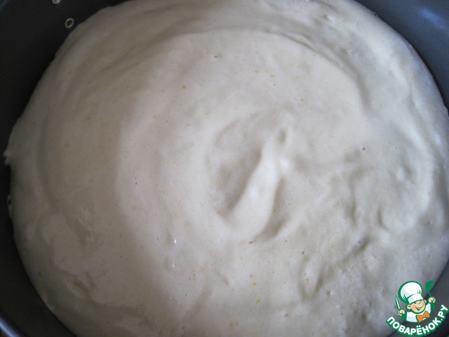 К желтковой массе аккуратно подмешиваем сначала муку с разрыхлителем, а затем и белки. Тесто выкладываем в форму и выпекаем 35 минут ( или до сухой зубочистки) при 180 градусах