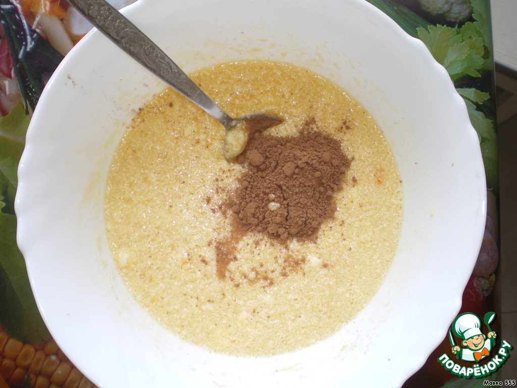 Затем добавляем муку и разрыхлитель и перемешиваем до образования однородной шоколадной массы.