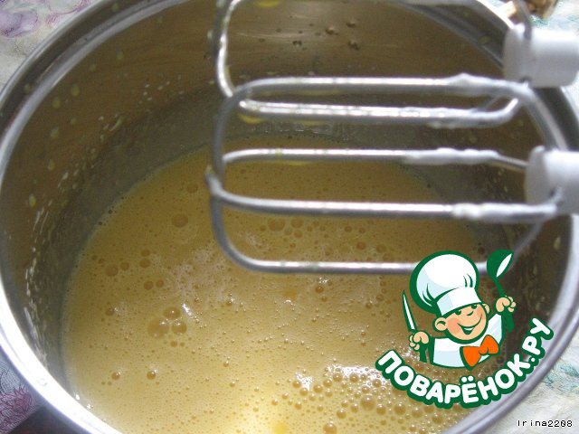 Смешать сок, растительное масло, 0,5 стакана сахара и желтки