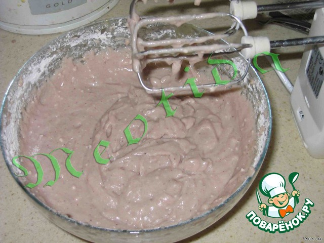 продолжая взбивать, добавить яйца (по одному)...должна получиться пышная масса