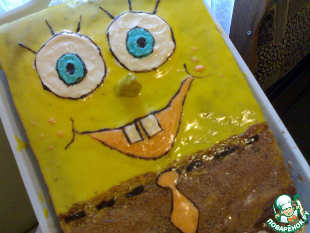 Из одного кусочка сделоть нос, обмазать желтым кремом.