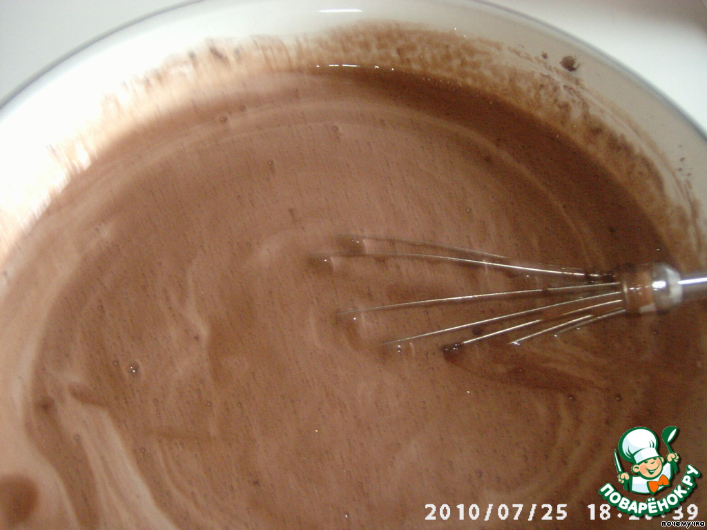 В теплую массу добавим соду, гашенную уксусом, и какао,