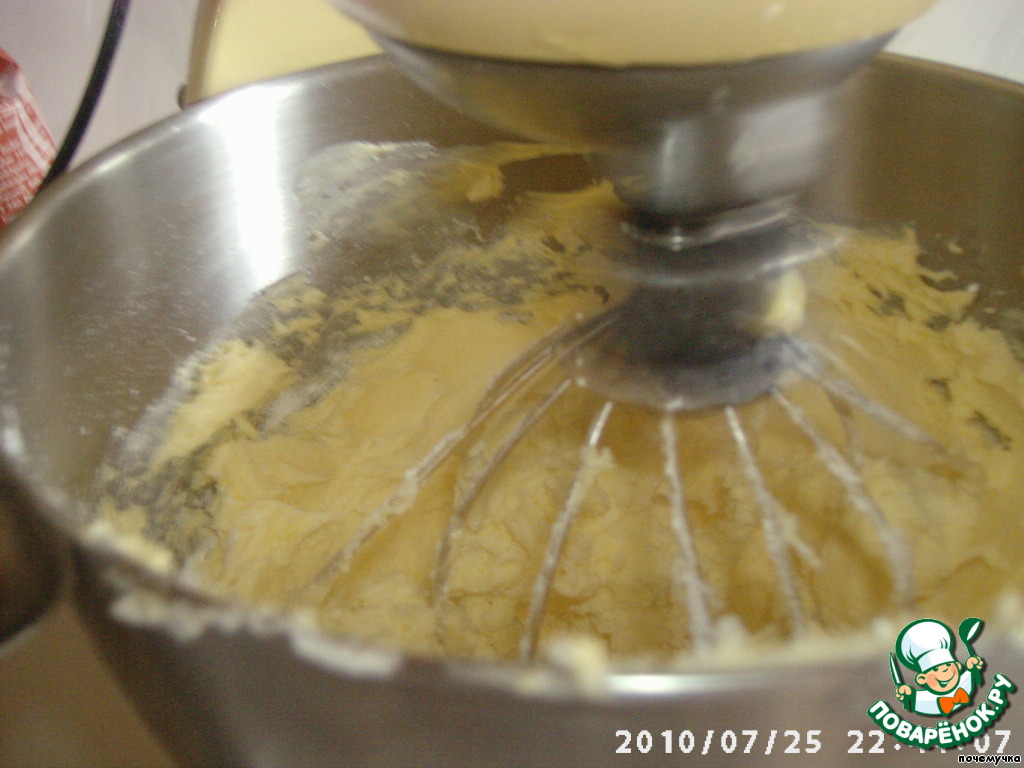 Сливочное масла взбиваем и по ложке добавляем заварную массу, не переставая взбивать.
