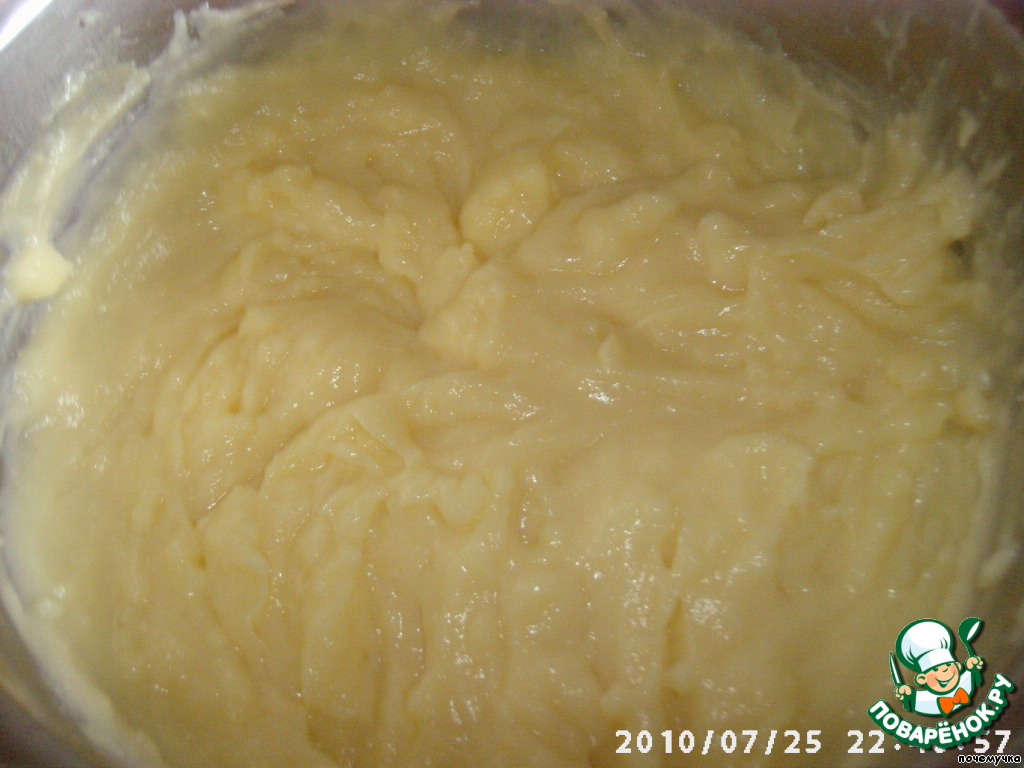 Теперь нашу заварную массу соединим с мукой.