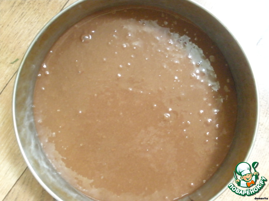 Половину теста выливаем в форму (d 28), покрытую бумагой для выпечки.