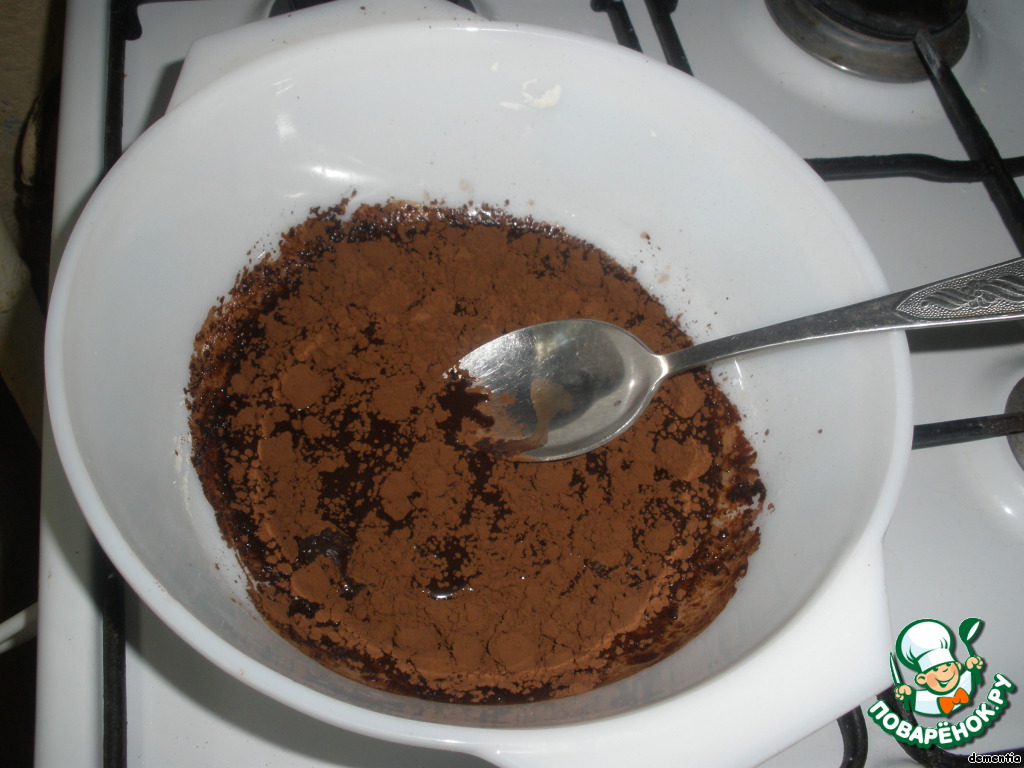 Воду доводим до кипения, засыпаем какао, перемешиваем до растворения комочков. Даем смеси чуть остыть.
