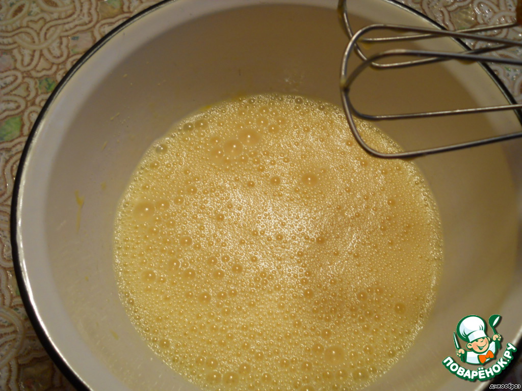 Взбить 2/3 банки сгущенного молока с яйцами.