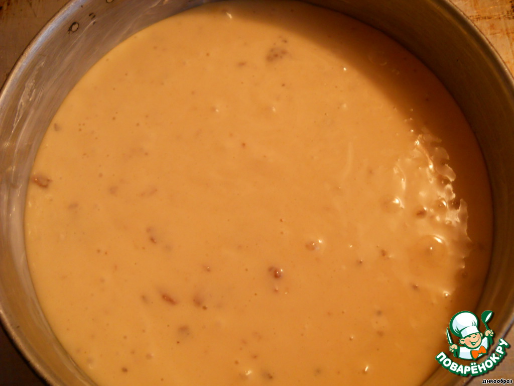 Вылить тесто и немного встряхнуть форму, чтобы тесто уплотнилось. Выпекать 35 минут при 190 градусах.