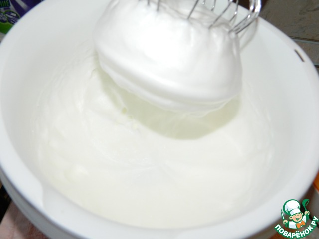 Взбиваем очень хорошо белки с солью. Отставляем.