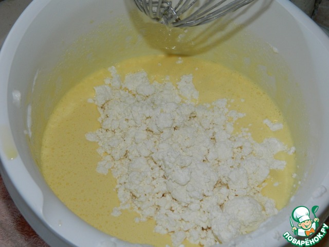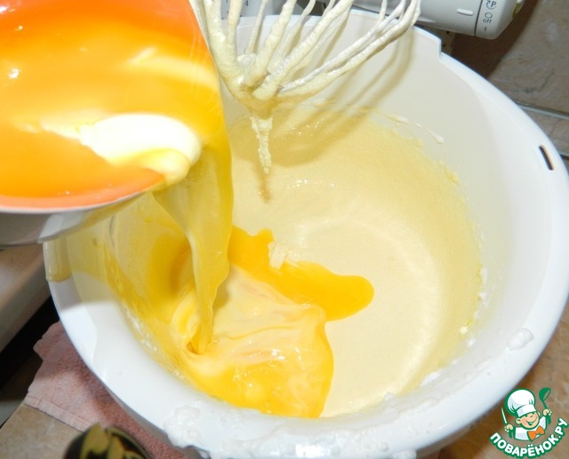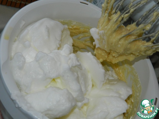 Добавить к тесту взбитые белки и аккуратно перемешать.