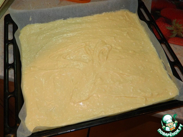 Тесто распределить на 2 противня (противни от стандартной газовой плиты), застеленных бумагой для выпечки. Выпекать при 180С до готовности (минут10-15).