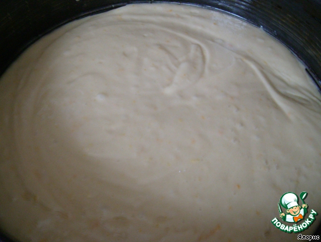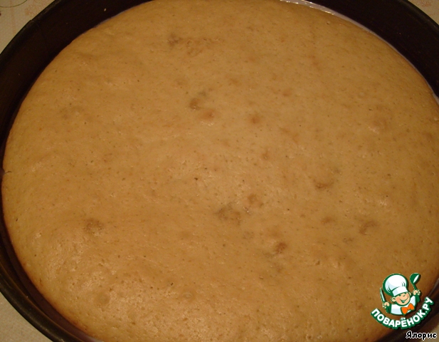 Выкладываем тесто в разъемную смазанную форму и в течение 15-20 минут в горячей духовке выпекаем бисквит.