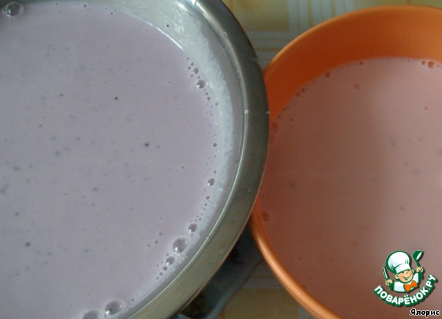 Готовим две желейные массы для заливки: одна - чернично-ежевичная, вторая - клубничная. Нужно следовать инструкции на пачке с желатином.