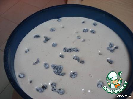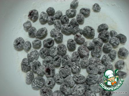 Клюкву я промыла, просушила и обваляла в муке, чтобы не утонула (но она все равно опустилась на дно), хотя вкус от этого не ухудшился