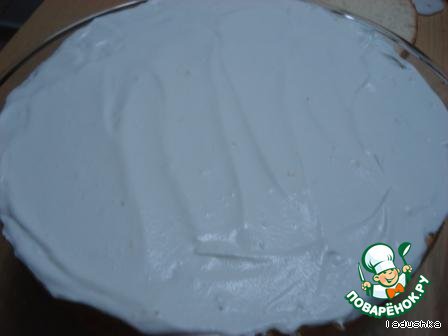 Берем пропитанный сиропом нижний круг, кладем его на подготовленное блюдо и сверху обильно покрываем кремом, дальше второй круг, и если есть третий, повторяем то же самое, покрывая, оставшимся кремом, и обмазывая торт со всех сторон. По желанию, торт можно украсить и крошкой из печенья и всякими кондитерскими украшениями, в общем, кто как хочет или у кого какая фантазия.