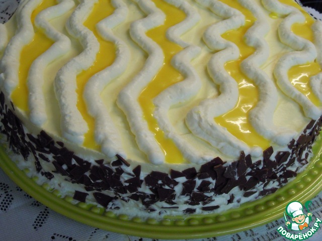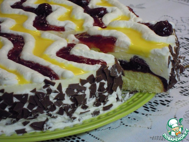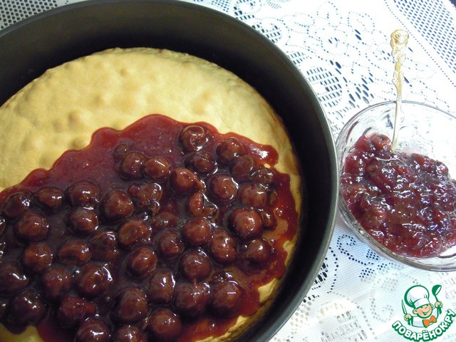 Выложите на вишневый слой торта. Поставьте в холодильник на 2 часа.