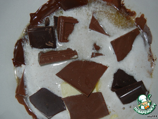 Шоколад разломать на небольшие кусочки и растопить со сливочным маслом на водяной бане.
