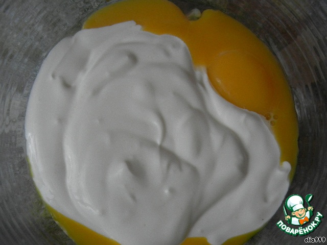 Белки взбить со щепоткой соли в крепкую пену и подмешать к массе.