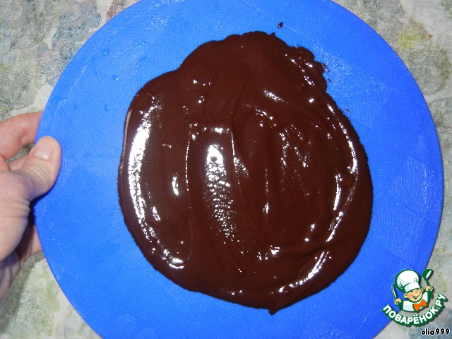 Оставшуюся часть шоколада вылить на досочку, разровнять и поставить в холодильник, чтобы затвердела.