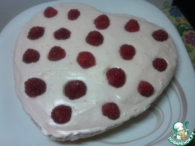 | Не один летний сезон не обходится у меня без приготовления этого вкусного торта. Очень простой в приготовлении - снизу бисквитный корж, прослойка из малины со взбитыми сливками, а сверху ягоды малины. Поэтому запасаемся малиной и пробуем новый рецепт. |
