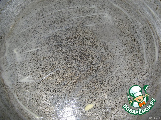 Тесто делим на три части. Одну выкладываем в смазанную форму. Распределяем его по форме.
