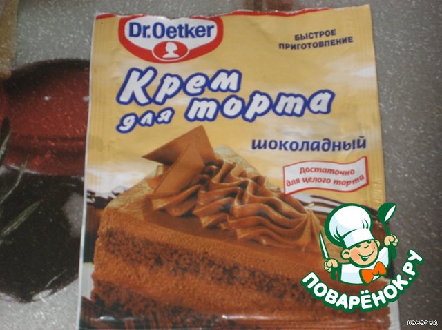 Собрать торт,каждый корж смазать кремом,коржи сложить друг на друга.Обмазать торт кремом со всех сторон,убрать на ночь в холодильник.Я пробовала сделать ручку,но она не держится,и пришлось её убрать.