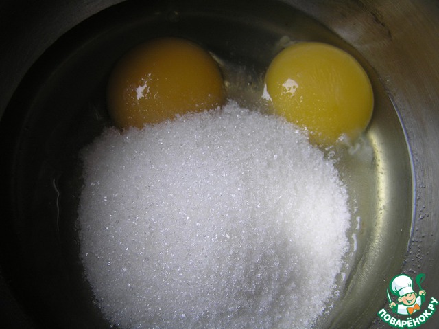 А пока приготовить баварский лимонный мусс. Желатин залить холодной водой (50мл) и оставить до набухания. Желтки смешать с сахаром.