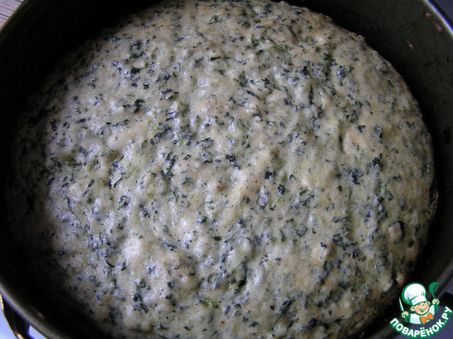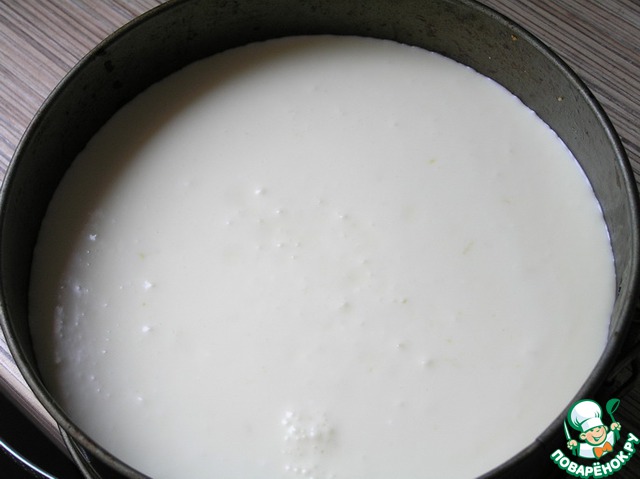 Тесто выложить в смазанную маслом форму для выпечки (дно я застелила пекарской бумагой, форма 18 см).