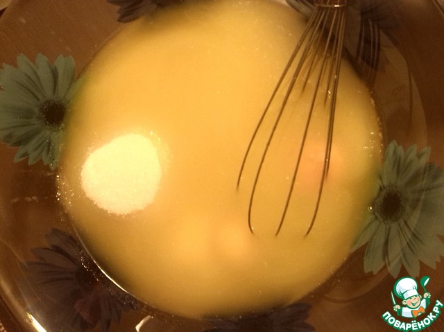 Растапливаем маргарин. Добавляем яйца и сахар. Перемешиваем.