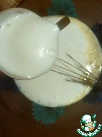 Кипятим молоко. И в горячее кипяченое молоко добавляем соду. Помешивая молоко с содой добавляем в маргариновую массу.