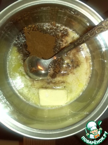 Делаем глазурь. Масло, молоко и какао доводим до кипения постоянно помешивая.