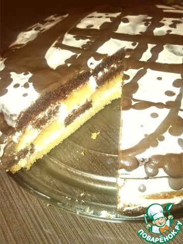 | Рецепт с этим очень странным названием был обнаружен мной в одной из кулинарных книг несколько лет назад, когда мы с подругой в свободное от школы время учились готовить )) Возможно по процессу приготовления он имеет другое название, но пока похожих рецептов я не встречала. По книге рецепт был без какао. Но за несколько лет я пробовала его готовить с разными кремами и сиропами, и на мой вкус с какао самый лучший ))) Оформление можно придумать различное, но я решила сделать торт таким. Очень рекомендую ))) |