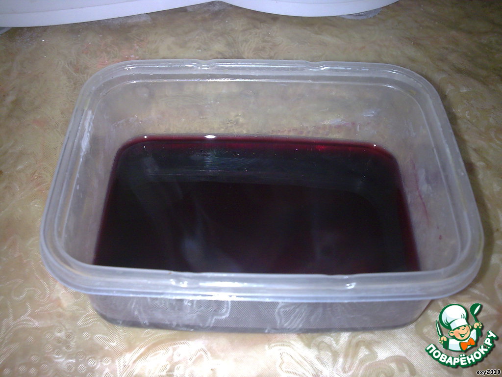 15 г.желатина нужно замочить в 100 грамм вишневого сока. Стоит 30 минут. Потом на водяной бане нагреваем до полного растворения желатина, минуты 3.
