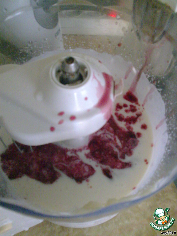 3 яичных белка взбиваем миксером и добавляем щепотку лимонной кислоты. Взбиваем. Постепенно вводим сахар и каждый раз взбиваем. Добавляем во время взбивания 100 грамм вишен.