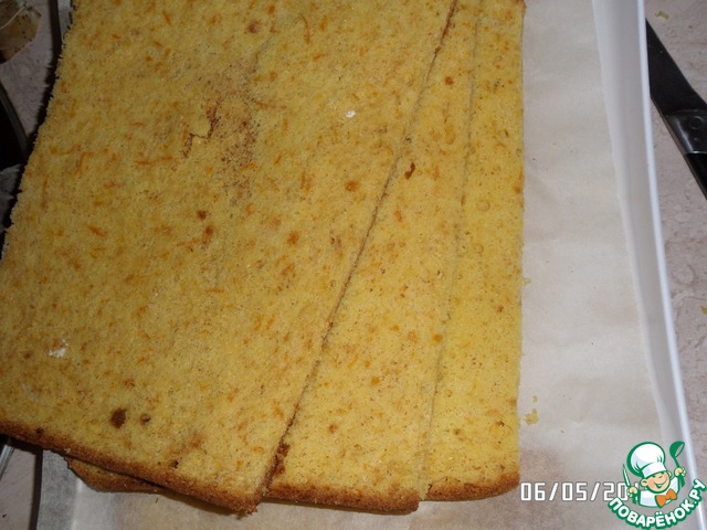 Разрезаю на коржи (у меня 4 коржа вышло)