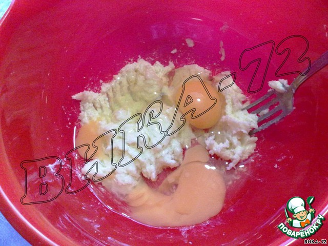 Размягченное масло растираю с сахаром, добавляю яйца, слегка взбиваю до однородной массы