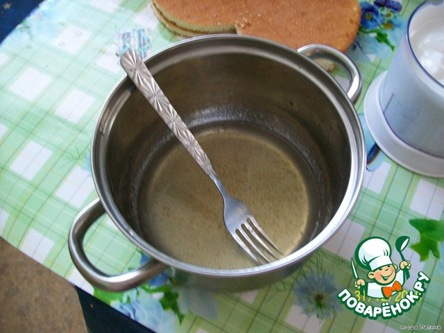 Пачку желатина замочила в 0,5 стакана холодной кипяченой воды на 40 минут. Затем подогрела до полного его растворения на медленном огне (не допускать, чтобы он закипел).