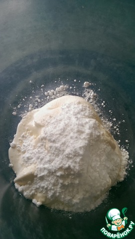 Теперь готовим крем: взбейте сметану с половиной пудры.