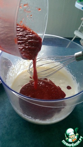 Клубничное пюре добавьте к сметанному крему (часть клубничного пюре можно оставить для украшения)