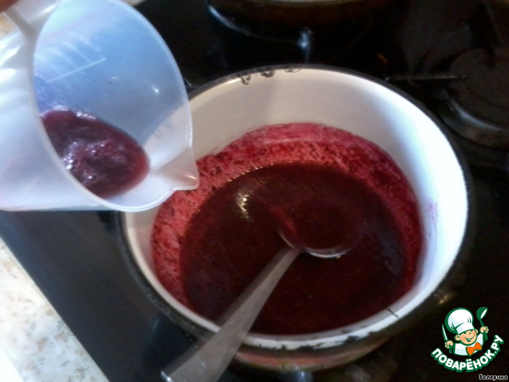 Пюрировать ягоды, добавить 1-2 ст.л. сахарной пудры и 3-4 ст.л.