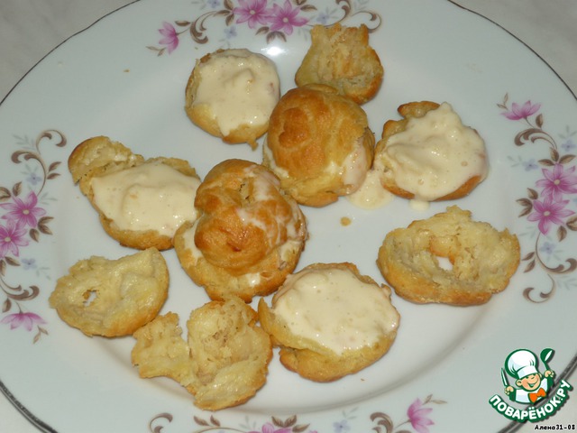 Готовые остывшие эклеры разрезаем пополам, начиняем кремом и накрываем верхушками.