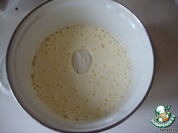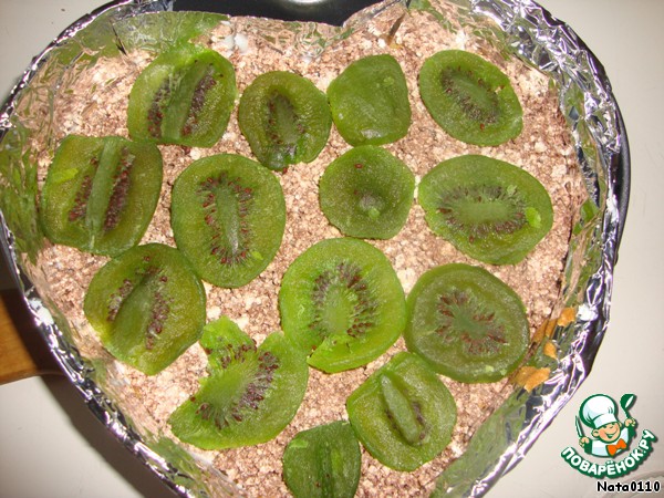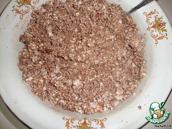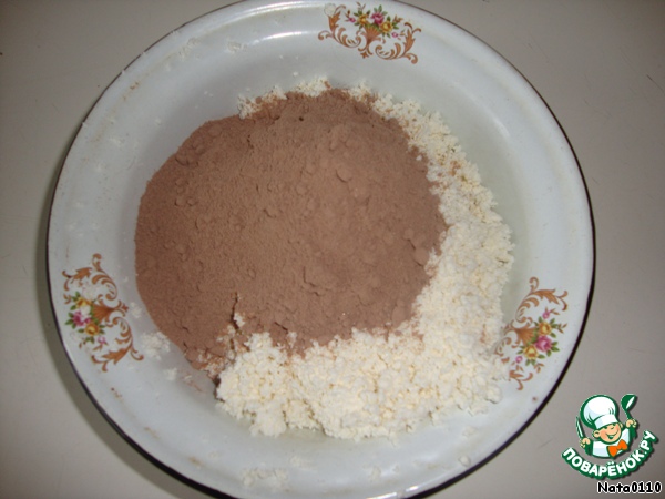 Тем временем готовим начинку: цукаты замачиваем в горячей воде минут на 10, готовим желе по инструкции на пачке. Творог соединяем с какао,