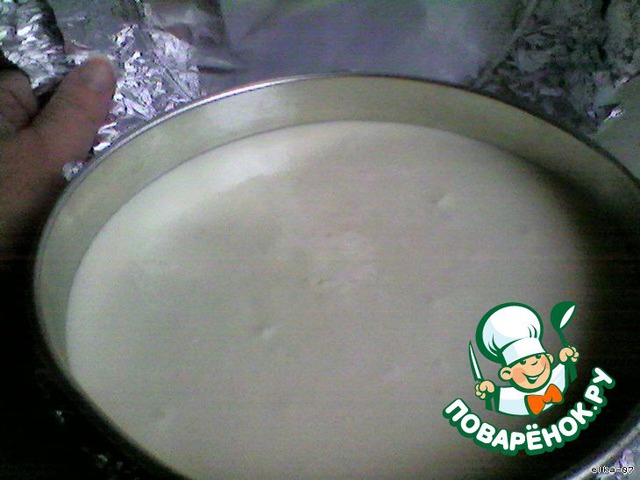 Из продуктов для коржа замесить негустое тесто и испечь корж в разъемной форме. Не вынимая корж из формы, остудить. Пока остужается, приготовить второй слой.