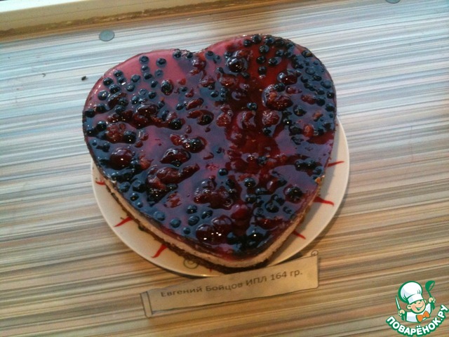 Сейчас будем варить желе, берем воду с желатином, добавляем ягоды и пудру, ставим на огонь и держим до растворения желатина. Холодным желе заливаем торт сверху, и ставим в холодильник на 2 часа. Вот торт «Лесная ягода» готов.