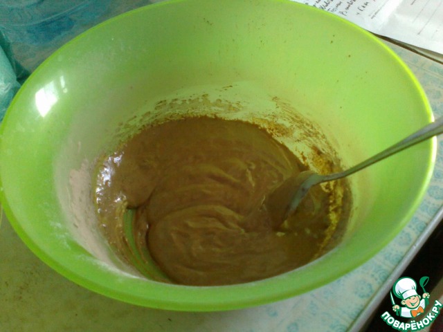 В отдельной миске смешиваем муку с какао (заранее просеянную)