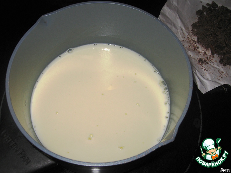 Добавить шоколад и растопить его, помешивая! Убрать крем в холод на 30 минут.