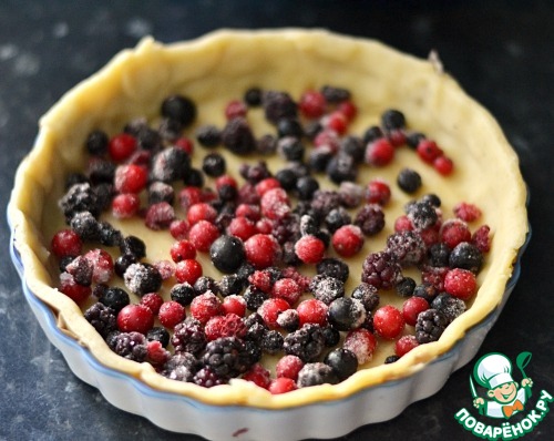Вынуть тесто. Разложить замороженные ягоды, предварительно НЕ размораживая.