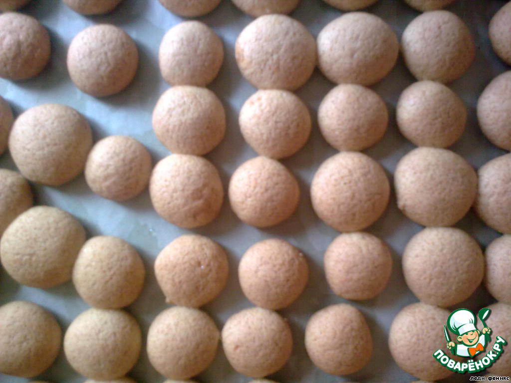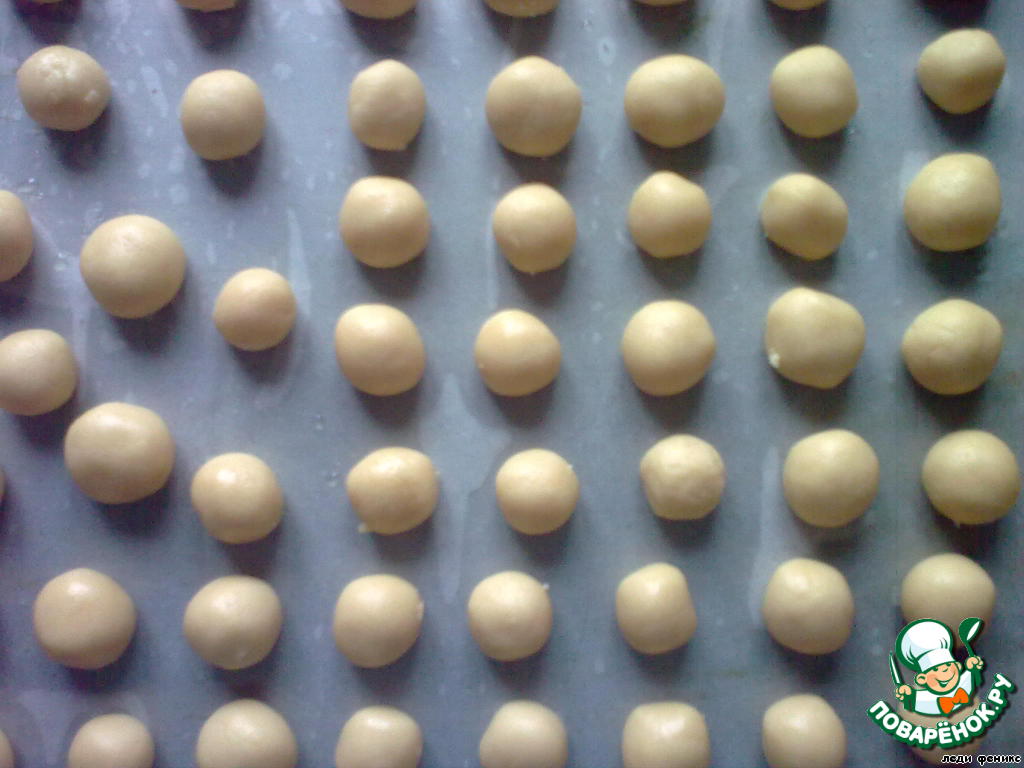 Выпечь шарики при 200 градусах до золотистого цвета. Остудить.