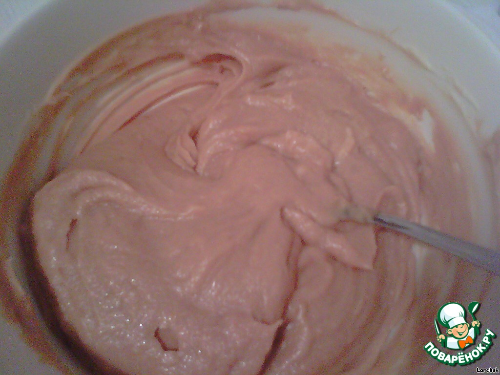 Заготовки остывают, готовим крем: хорошо размягченное масло растираем с вареной сгущенкой.